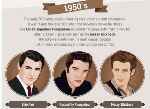 The same logic applies to men’s haircut, the recent haircut styles is a remix from the 1950’s . Haircut from the 50's includes the “side part” “Rockabilly pompadour” "Messy slick back” ” flat top and "Punk" cut A.K.A fresh prince cut and also"Afro.” All these is to show how far along we’ve come in remaking/remixing of things around us, and how far we've evolved into something better and more trendy.